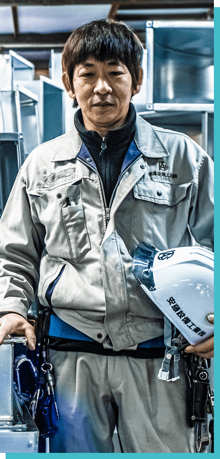 高校時代からここでアルバイトしていたのがきっかけで入社しました。実際入社してみたら仕事がおもしかったということで続いていますね。学校は自動車整備の学校だったんですが、自動車関係のお給料と比べて、安藤設備工業の方が断然良かったというのも本音ですが笑